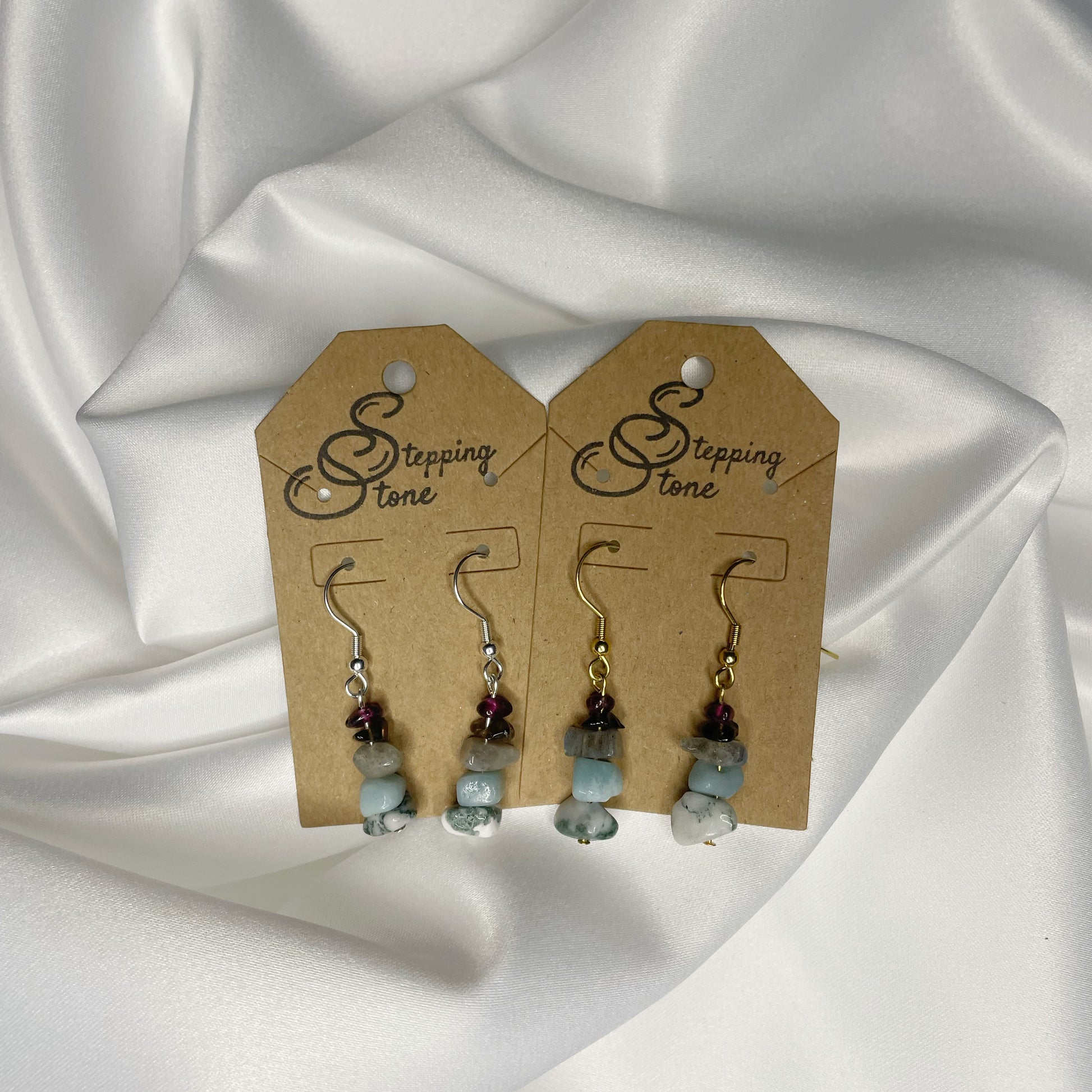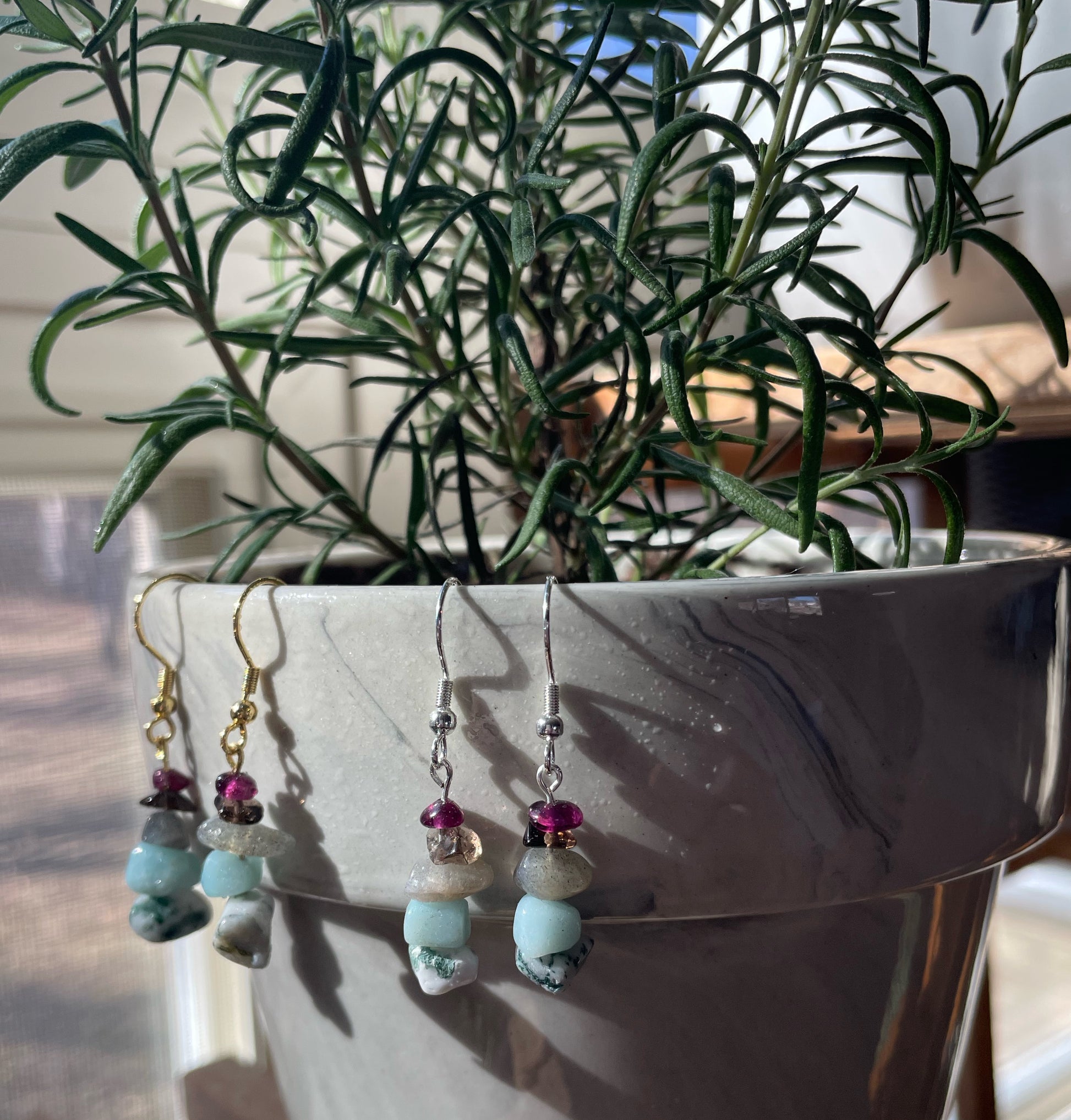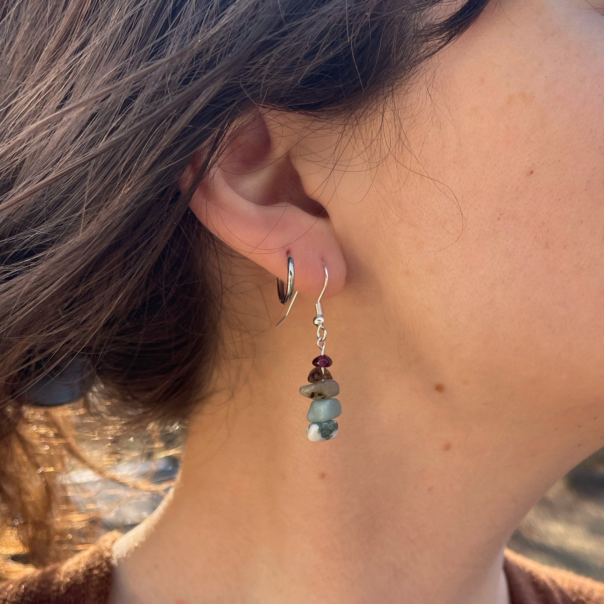 There is something almost magical about these earrings I can't quite put my finger on. Maybe it's the iridescence of the Labradorite or the way the pattern of the Moss Agate almost looks alive. Whatever it is, "Becoming a Better Version of Yourself" is my favorite of the manifestation cairn series. Each natural gemstone is hand picked to insure beautiful and balanced sets. However, beauty is not the only factor in choosing which stones to uses. The crystals that make up this set were selected for their association with metaphysical properties.